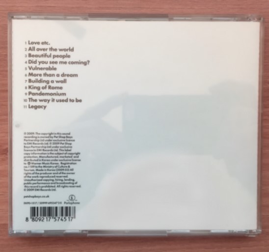 오늘 소개하는 앨범은 사실 펫 샵 보이즈의 '역대 최고작!' 정도는 아니다.(그런 앨범으로는 [Behaviour]를 꼽는데, 그건 그렇고, 그럼에도, 내가 가장 좋아하는 앨범은 [Introspective] 또는 [Very] 또는……) 오히려 이 앨범은 '부활작'에 가까운 앨범이다. 그리고 내가 가장 좋아하는 앨범이기도 하다(으흐흐). 누군들 그렇지 않겠냐마는, 나는 침체기를 겪은 뮤지션이 화려하게 부활하며 내놓은 앨범을 좋아하는 경향이 있다. 펫 샵 보이즈는 [Very] 앨범의 대성공 이후로 조금씩 조금씩 (예술적으로나 판매량으로나) 퇴보해 간다는 평이 대세였으나 이 앨범 이후로 대반전에 성공한다. 수록된 'Love etc.'나 'Did you see me coming' 같은 곡들은 싱글로도 꽤나 히트하였고, 라이브에서도 자주 부른다.