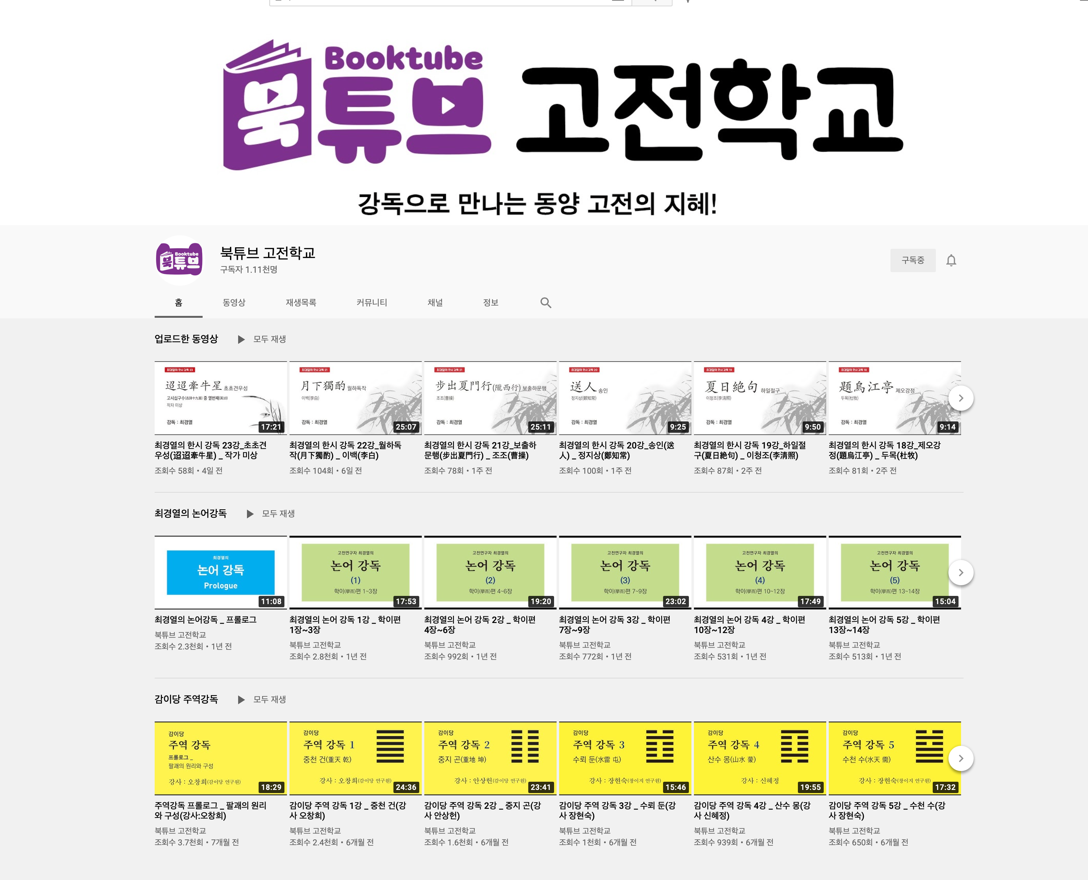 그동안 ‘북튜브 고전학교’에 올라온 강의영상 중