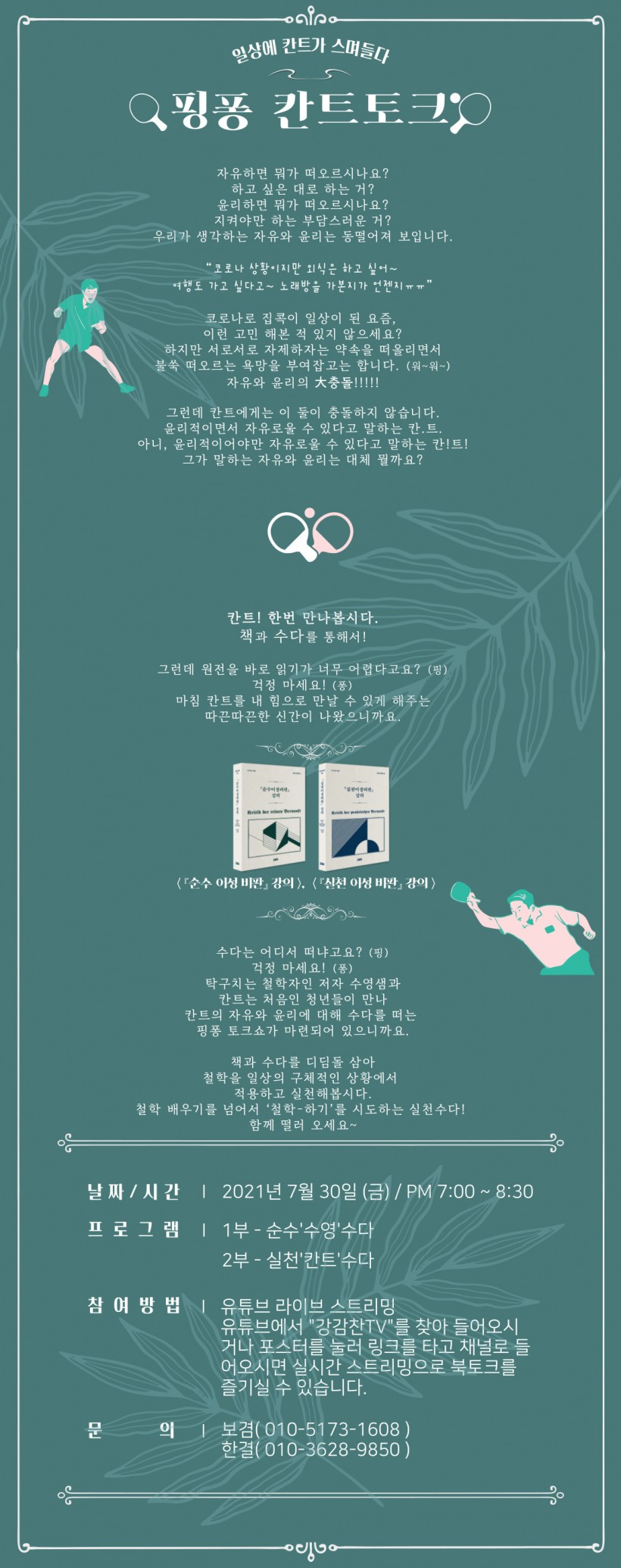 | 오늘 저녁!! 핑퐁 칸트 북토크가 열립니다!! (0) | 2021.07.30 |