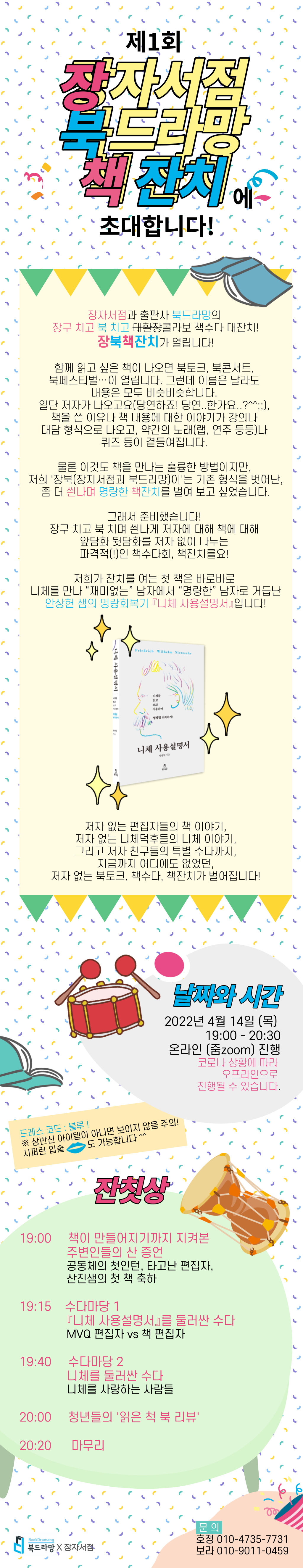 장자서점-북드라망의 장구 치고 북 치고 씐나는 책잔치, 장북책잔치가 탄생했습니다! 제1회 장북책잔치의 주인공은 『니체 사용설명서』(안상헌 지음)입니다!!