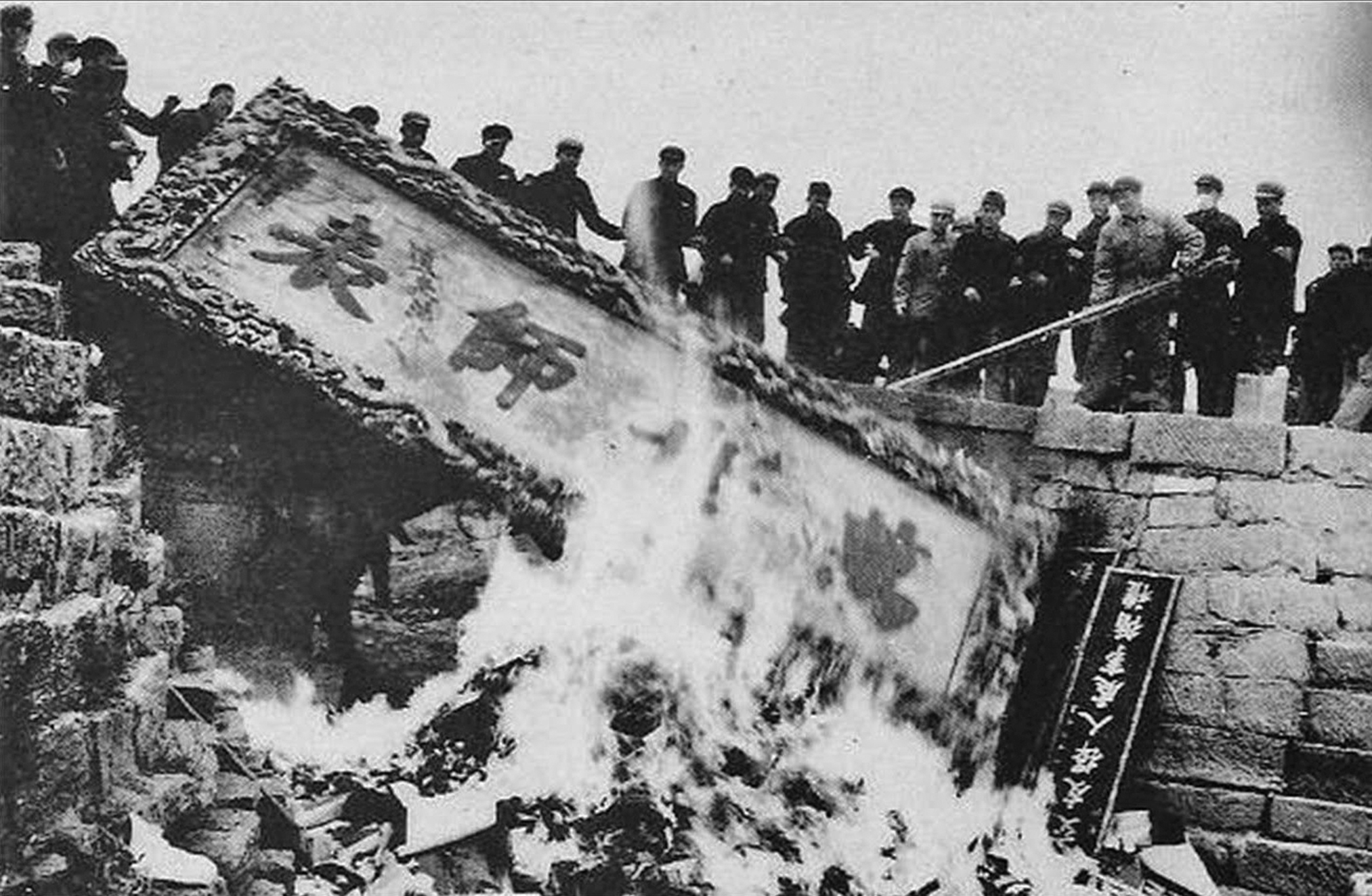 파괴자들 _ 공자 사당의 현판을 불태우고 있는 홍위병들