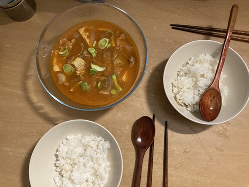 또 며칠 전에는 김치찌개를 끓이기도 했다. 내가 사놓은 김치가 점점 시어가자 인터넷으로 ‘신 김치 요리’를 검색해본 모양이다. 내가 고추장이 없어서 제프리는 앞집 중국인 이웃 샤오에게 고추장을 빌려야 했다. (이 두 사람은 나보다 더 한식을 좋아한다.) 샤오는 “해완이가 맛있는 한국 음식을 하나보지?”라고 말하며 흥분했는데, 거기에 제프리가 들려준 답이 걸작이다. “해완이는 맛있는 한국 음식을 하지는 않고 먹을 예정이야^^” 아닌 게 아니라 김치찌개는 정말 맛있었다. 그날 나는 밥 두 그릇을 비웠다.