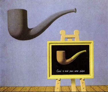 “이제 외따로 떨어진 파이프 데생은 파이프라는 말이 통상적으로 지시하는 그 형태와 자신을 가능한 한 비슷하게 만들어 보려 하지만 헛일이다. 또한 학술서에서의 그림설명이 그렇듯 텍스트도 충실하게 데생 아래에서 펼쳐지려 하지만 그것도 헛일이다. 그들 사이에선 이혼 서식만이, 데생의 이름과 텍스트의 지시물을 부인하는 언표만이 있을 수 있다. 어디에도 파이프는 없다.”(34)