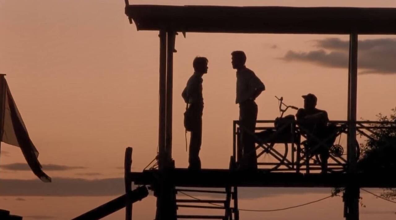 영화 초반 군인들과의 협상이 잘 안 된 프란과 그에게 윽박지르는 시드니가 노을을 배경으로 서 있는 장면이 있습니다. 감독은 다음 날 잔혹한 현장으로 어떻게든 떠나려는 두 사람을 아름다운 노을을 뒤로하고 실루엣처리 합니다. 자막과 소리만 없애면 생뚱맞게 어느 휴양지의 모습 같습니다. 어쩌면 18세기의 남미(미션)나 20세기의 인도(시티오브조이), 동남아(킬링필드)는 롤랑 조페 감독에게 있어서 영화의 배경 그 이상의 의미를 갖지 못하는 것은 아닐까요? 선구자 혹은 지식인, 구원자인 서구 백인과 그 대상이 되는 지역의 원주민들의 구도는 그의 세 편의 영화 속에서 크게 달라지지 않습니다. 그 때문인지 이 세 편의 영화 이후 그는 크게 주목받지 못하고 스크린에서 사라집니다.