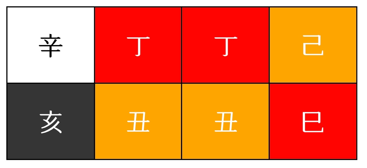 따로 표시하진 않았지만, 다들 아시리라 믿습니다. 오른쪽부터 연/월/일/시주이고요, 편의상 두 분의 일주대로 부르겠습니다. 정축님과 신해님으로요. 두 분 사주의 차이가 눈에 들어오시나요? 딱 보아도 정축님에게는 파란색, 즉 목기가 하나도 없고, 신해님에게는 빨간색, 즉 화기가 하나도 없네요. 정축님에게 목(=인성)은 없지만 식상인 토는 넉넉합니다. 그래서 본인을 ‘무인성 식상녀’라고 칭하셨는데요, 이 무인성 식상녀가 공부로 인생을 바꾸게 됩니다. 어쩌면 여러분들 역시 짐작하고 계실지도 모르는 그곳, 감이당과 접속을 한 것이죠. 인생을 바꾸게 됐다는 것은 ‘어느 날 갑자기 스타가 됐어요’라는 종류의 것이라기보다는 자신의 모습을 새롭게 바라보기 시작하게 됐다는 뜻은 아닐까요? 정축님은 감이당에서 공동생활을 하며 공부를 했는데, 자신이 베풀었던 친절과 배려(정화에 축토까지 깔고 있는데 무려 곱하기 2네요)가 본인에게 되돌아오지 않는다고 느낄 때 분개하는 자신을 보고, 마음을 교환가치로만 이용했다는 데 생각이 미쳐 지금은 계속해서 새로운 마음을 내는 공부를 하고 계시다고 합니다.