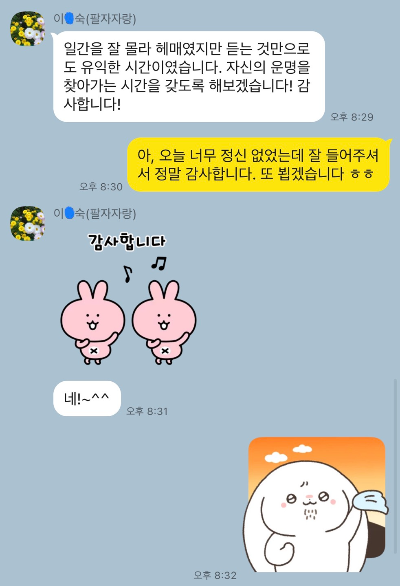 아무튼, 시작은 심히 삐끗하였으나 끝은 아름다웠던 (마… 맞지요?) 그날의 이야기를 펼쳐 봅니다! 이번 팔자자랑대회의 고백자는 2명!(여기에 대한 뒷이야기는 그날 오셨던 분들만의 시크릿! 쉿!)