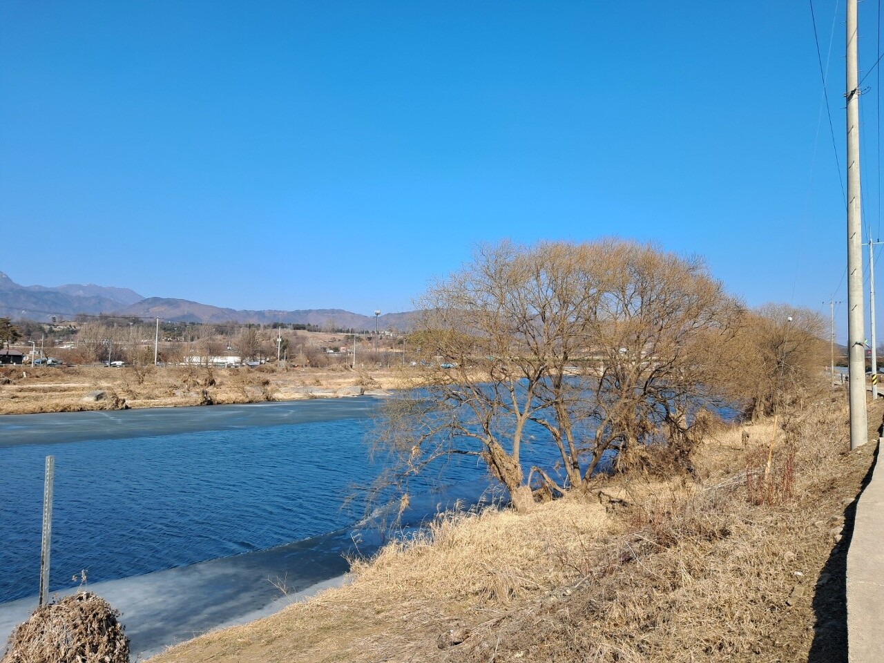 물소리길 3코스는 아신리 마을을 거쳐 옥천면을 통과하면서 남한강 쪽으로 연결되어 있다. 재작년에 걸어봤던 길이라 좀 익숙하게 느껴졌다. 은영님이 같은 계절에 왔던 길을 또 걷는 까닭을 물었다. 둘레길을 걷다보면 누구라도 같이 보면 좋겠다는 경치들이 있다. 물소리길을 처음 걸을 때도 그랬다. 탁 트인 겨울 강을 걸으며 마음도 탁 트이는 것 같았다. 친구들에게도 이 경치를 보여주고 싶었다. 걷는 것을 좋아한다는 은영님과 같이 걸을 만한 길을 고르자니 이 길이 떠올랐다. 강을 따라 걸으며 보니 아직 강기슭 쪽에는 얼음이 남아 있었다. 비는 그쳤고 하늘은 푸르게 투명해져서 드높았다. 바람이 제법 차서 앉아서 간식을 먹을 엄두를 내지 못하고 3코스의 종점인 양평역에 도착했다. 우수라고 하지만 봄이 오려면 조금 더 기다려야 할 것 같았다.