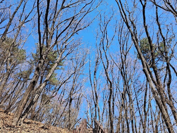 심곡서원 건너편 코스 출발점에 도착하니 몸도 어느 정도 덥혀졌다. 산길로 접어 드니 드문드문 진달래가 피어 있었다. 참나무 종류가 대부분인 광교산에서 봄이 오는 초입에만 볼 수 있는 연분홍 빛깔에 눈도 즐거웠다. 산길은 오랜만에 걷다보니 경사진 길에서는 숨이 차올랐지만, 매봉 약수터를 지나 천년 약수터까지 오니 한숨 돌릴 여유도 생겼다. 약수터 주변에 설치된 데크 여기저기에 간식들을 펼쳐 놓고 왁자하게 즐기는 이들이 보였다. 나도 빈 데크에 앉아서 쉴 겸 간식타임을 가졌다. 물 한 모금 초코바 하나 먹자니 영 성에 차지 않았다. 간식 타임의 즐거움이 반쪽이 되어 버린 허전함이 그 빈자리를 채웠다.