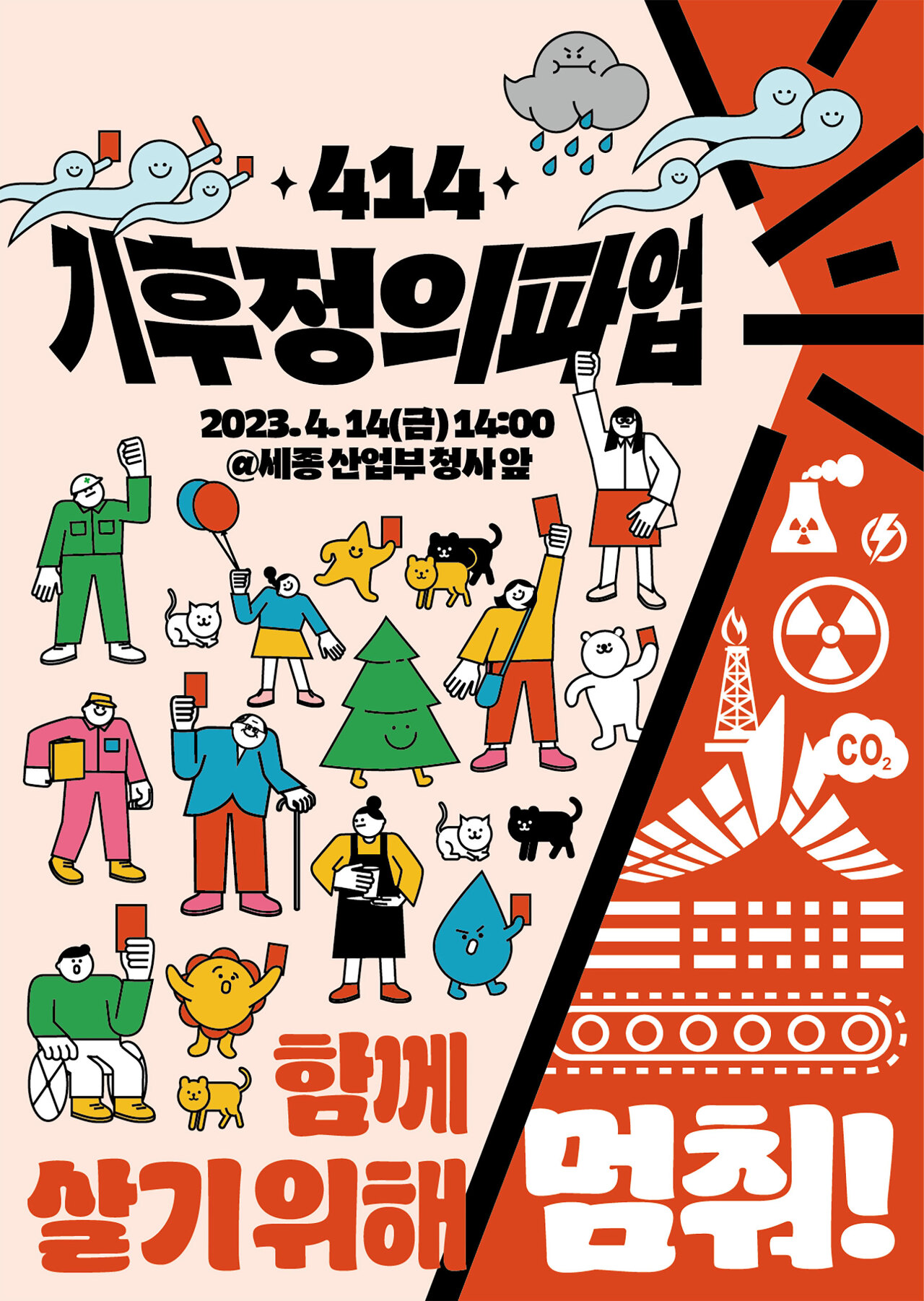 지난 주 금요일 ‘414기후정의파업’에 다녀왔다. 잠깐, 왜 ‘기후정의’인가? 이 용어는 기후변화와 생태파괴를 ‘환경’ 혹은 ‘생태’라고 일컬어지는 추상적인 ‘자연’의 범주에 국한시키지 않고 거기에 이미 얽혀 있는 계급, 지역, 빈부, 인종, 젠더, 장애 등의 문제들과 더불어 사유하고자 하는 개념이다. 기후위기는 ‘전 지구적 위기’라는 수사를 동반하며 모두에게 동일한 위협인 양 묘사되지만 사실 굉장히 불평등하고 부조리한 방식으로 분배된다. 결코 평평한 적 없었던 우리의 사회 속에서 환경의 재난이 차별적이고 폭력적이지 않게 전개될 리가 없잖은가. 기후위기는 단 한 순간도 중립적인 적이 없었고, 그 현실에 직면하고자하는 자는 정의의 문제에 다다르지 않을 도리가 없다. 그렇기에 환경문제는 시작도 중간도 끝도 정치적일 수밖에 없다.