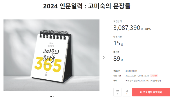 먼저 텀블벅에서 진행 중인 “2024 인문일력 : 고미숙의 문장들”입니다!(짝짝짝)