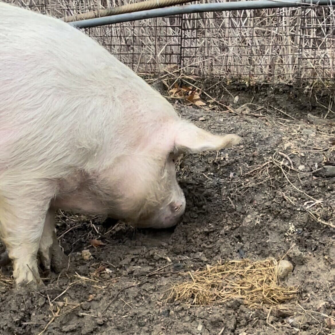 해러웨이의 개념을 빌리자면 새벽이의 코 역시 촉수적 사유를 촉발한다. 연구에 따르면 다른 동물들에게는 없는 돼지만 갖고 있는 후각수용체 유전자가 따로 있다고 한다. 이것은 아직 구체적으로 밝혀지지 않았지만 돼지의 후각이 단순히 냄새를 맡는 것 이상의 중요한 역할을 한다는 증거라고 한다. 새벽이는 식사 후에 돌아다니며 루팅(코로 땅을 파는 행동)을 하는 습성이 있다. 이전에는 그저 새벽이의 취미로만 생각했는데 돼지의 후각이 아직 밝혀지지 않은 중요한 능력을 갖고 있다고 상상하니, 루팅은 새벽이가 땅과 교감하는 아주 특별한 방식이라는 생각이 들었다.