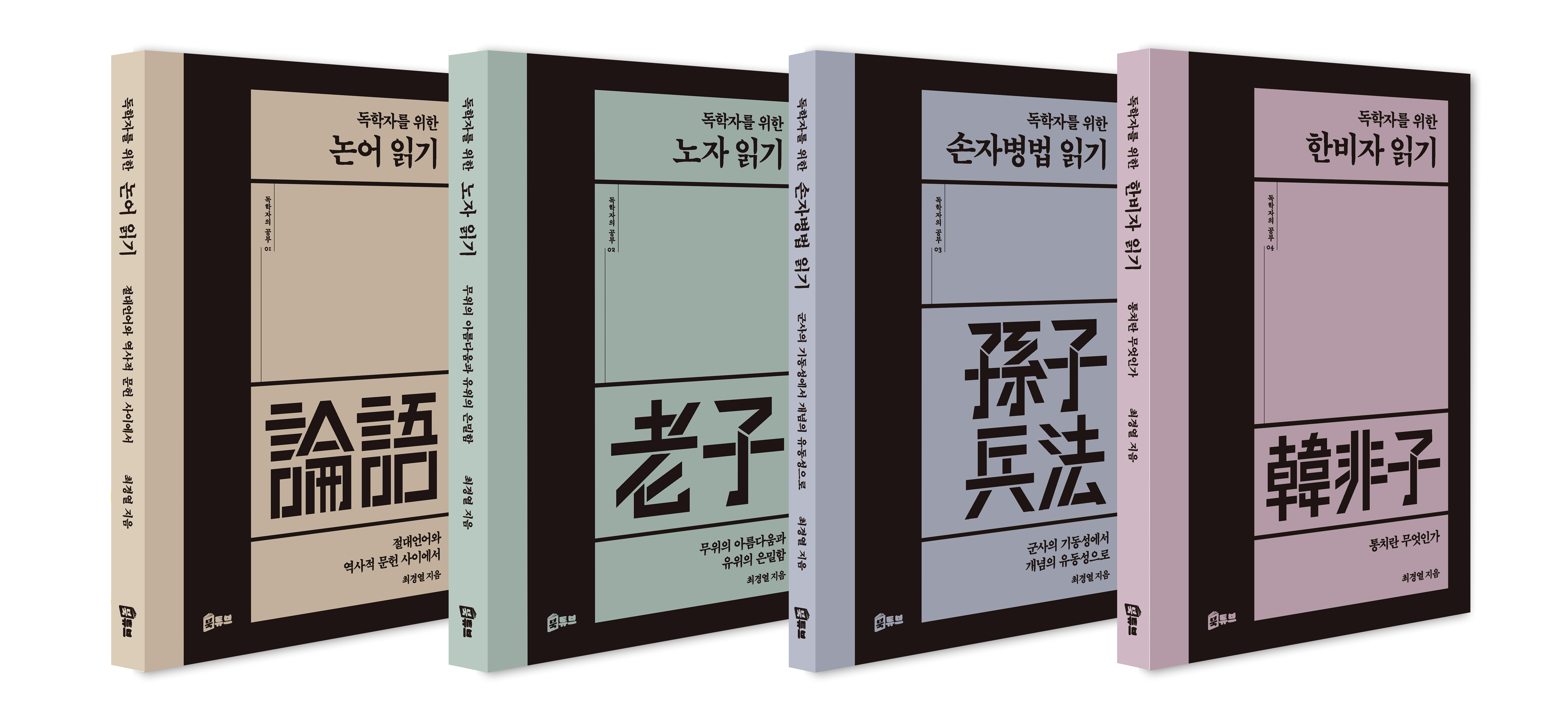 유가의 『논어』, 도가의 『노자』, 병가의 『손자병법』, 법가의 『한비자』. 제자백가의 대표 텍스트들이죠. 이번에 나온 ‘독학자의 공부’ 시리즈는 이 쟁쟁한 고전들을 한문학자인 최경열 선생님이 깊이 있게 풀어 주는 책들입니다. 최경열 선생님은 대안연구공동체 <파이데이아>와 <인문학당 상우> 등에서 한문 강독 강좌를 진행하면서 고전의 지혜와 재미를 많은 이들에게 전하고 계신데요. 이번에 나온 책들을 통해 제자백가 시대의 여러 사상가들이 품고 있는 다양한 의미를 드러내 보여 주고 있습니다.