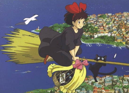 더 나아가면 포르코와 키키 모두 라디오 듣기를 즐긴다는 점도 닮았다. 포르코가 와이셔츠가 하나밖에 없는 단벌 신사고, 그 역시 집 없이 무인도에서 소박하게 지낸다. 그러므로 키키를 이해하기 위해서는 포르코와의 차이에서 접근해 들어가는 것이 좋겠다. 또 하나, 키키의 비행기는 빗자루다. 단지 배달일만 그리고 싶다면 우편배달기나 Fedex 물류 비행사를 꿈꾸는 소녀의 이야기여도 된다. 미야자키는 왜 빗자루를 선택했을까?