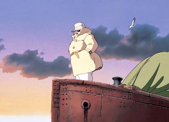 맨 처음, 세상사에 만사 심드렁해 보이는 포르코였다. 피오는, 유명한 전쟁 영웅이 왜 이렇게 아무 일도 안하고 있느냐며 이상하다고 했다. 키키가 우울했다면 포르코는 무기력했다. 이런 포르코가 벌떡 일어난다. 체험 학습에 간 열 다섯 명의 유치원생들을 납치되었을 때, 커티스가 피오와 결혼하는 것을 막으려 했을 때. 도시는 파시즘으로 다 물들어 있다. 그 와중에 사람들은 자기 즐겁자고 비행을 즐긴다. 포르코는 파시즘의 광풍에 빨려 들어가버린 전우들을 그리워하지만 직접 반전 활동을 하지는 않았다. 전쟁은 나몰라라, 해적들처럼 자기 욕망 채우기에 바쁘지도 않았다. 붉은 비행정에 피오를 태우기 위해서는 기관총 하나를 내려놓아야 한다. 포르코는 비행기에 아이와 소녀를 태우고 싶다. 혹은 멋진 비행쇼로 지상 사람들을 한번 크게 웃기고 싶다. 비행으로 사람을 살릴 길은 많고 많다! 포르코는 바로 이 점을 깨달으면서 자신의 저주로부터 풀려날 수 있었다.