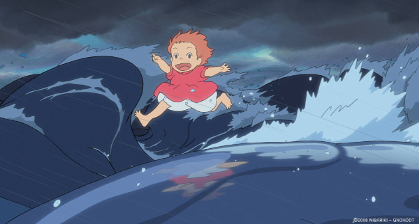 사랑꾼 포뇨, 욕망 덩어리 포뇨 덕분에 생태계 교란이 와서 해일이 마을을 덮친다. 그런데 포뇨가 쇼스케의 집을 찾은 그 다음날 아침, 벼랑 위 쇼스케 집 마당까지 차오른 물은 평화롭기만 하다. 엄마가 차로 다니는 길은 물에 잠겨 데본기의 보트라오레피스, 딥노린쿠스가 느긋이 따라가는 길이 되어 있다. 데보넨쿠스는 물 속에 잠긴 나무들 사이로 헤엄친다. 보트라오레피스나 딥노린쿠스는 실제 데본기에 활약하다 멸종한 동물이며 데보넨쿠스는 새로 창작해서 넣었다고 한다. 미야자키는 진짜 가짜라는 경계를 고집하지도 않는다. 마법의 힘, 활력의 바다로 가득찬 세상에서는 이상할 일도 없고 불가능할 일도 없다. 그래서 장난감 배에 아이들이 오르게 되고, 다이쇼기에 살았을 것 같은 가족들에게 리사의 행방을 물을 수도 있다.