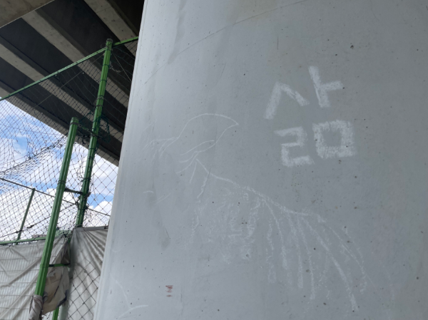 물을 받으러 공원 인근 화장실에 가는데 돼지 울음소리가 들리기 시작했다. 페트병에 물을 가득 담아 도축장으로 이동했다. 돼지 울음소리는 점점 더 크게 들렸다. 중간에 보이는 고가도로 기둥에는 전에 다녀간 비질 활동가들이 남긴 글과 그림이 희미하게 보였다. 코너를 돌자 큰 트럭이 나타났다. 그리고 그 안에 돼지들이 있었다.