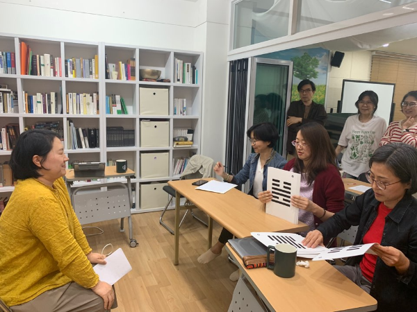 그러나 진짜 우리가 기다린 시간은 따로 있었습니다. 바로 낭송 대회와 스피드 게임!!! 낭송대회는 앞서 소개한 ‘사이에서 노래하는(낭송하는)’ ‘사이송’의 네 여인네가 맡았습니다. 일단 낭송 멤버가 어벤져스였습니다. 제주 이야기 할망 정복 샘, 차분한 카리스마 서윤샘, 분위기 메이커 옥주샘, 손재주 많은 암송의 달인 윤경샘. 이 네 여인은 매일 카톡에 암송한 것을 녹음해 올리면서 합을 맞췄다고 합니다. ‘연습만이 살길이다’, ‘암송은 머리가 아니라 몸으로 하는 거다’라는 진리를 몸소 실행했죠. 그렇게 탄생한 것이 앞서 소개한 ‘비벼대고 흔들어 댄’ 팔괘의 생성 노래였습니다. 결과는 어떻게 됐느냐구요? 영광스러운 대상이었습니다. (이건, 자랑이 맞습니다. ^^)