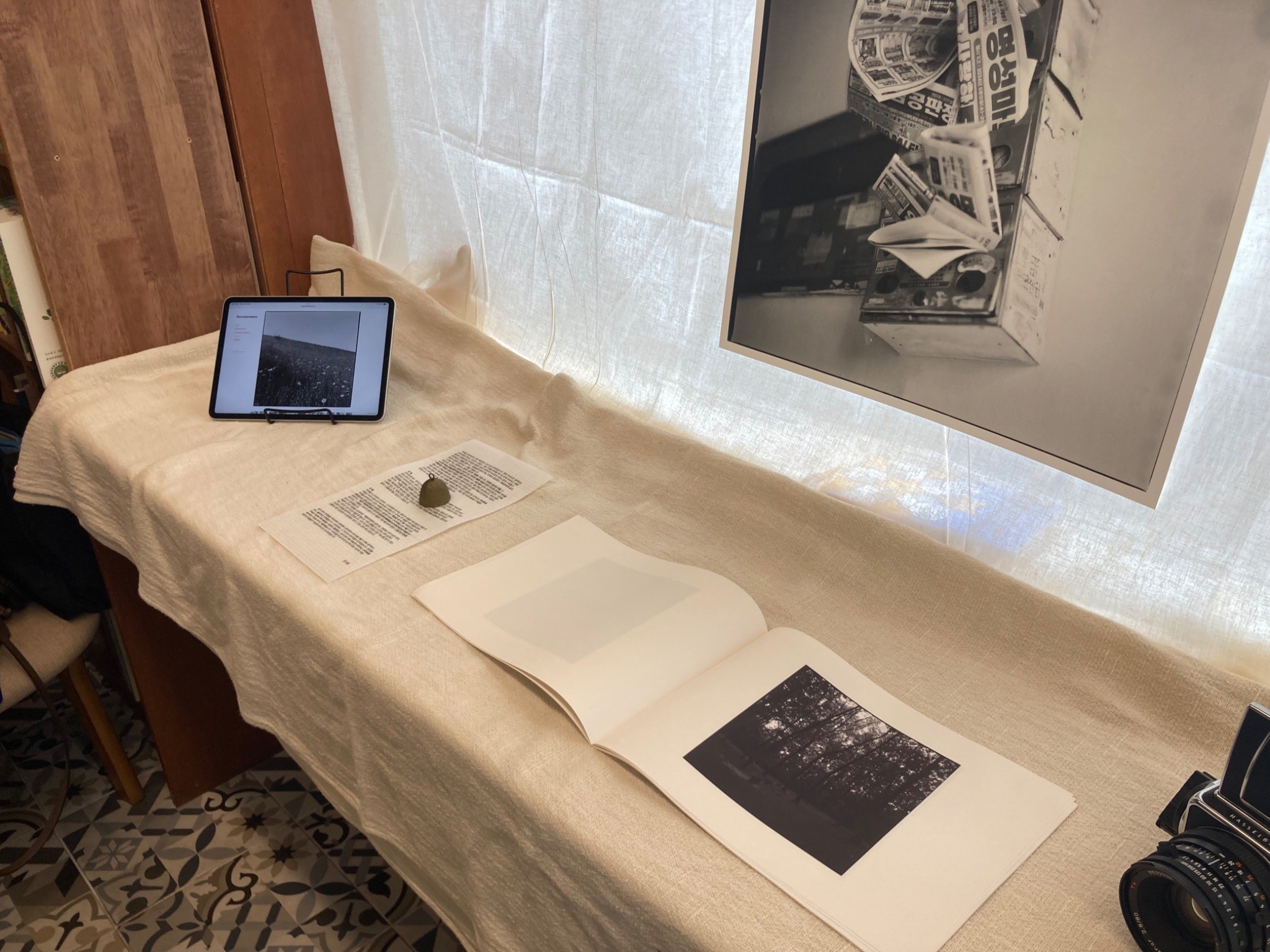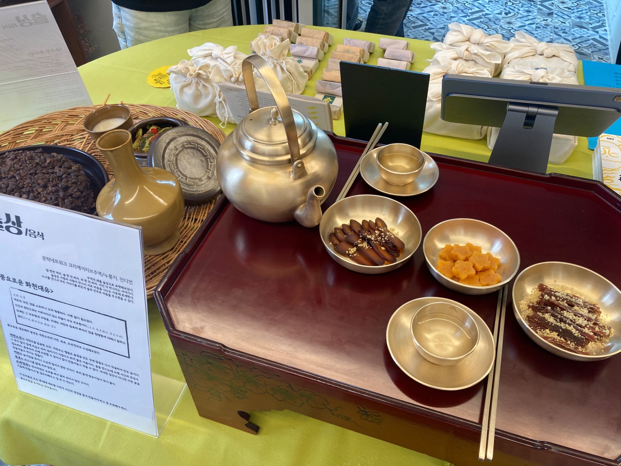 그리고 다양한 예술작품이 전시되어 있었습니다. 타로카드처럼 주역 괘로 답을 찾아보는 주역카드와 주역을 주제로 그린 1m 크기의 민화와 모션그래픽 영상, 술상과 흑백 사진이 있었습니다. 주역 카드를 봐주시는 분들에게 해답을 한가지 받고서 전시되어있는 작품을 둘러보는 재미가 쏠쏠했습니다. 주역카드는 판매도 했으며 괘 해석이 들어간 주역 비누도 판매 중이었습니다. 그리고 뒤쪽에서는 주역 점을 실제로 봐주었습니다. 미리 신청해서 질문에 대한 해답을 찾아가는 시간을 가지는데요. 구석에서 천으로 가려져 굉장히 은밀하게 진행이 되었습니다 ~