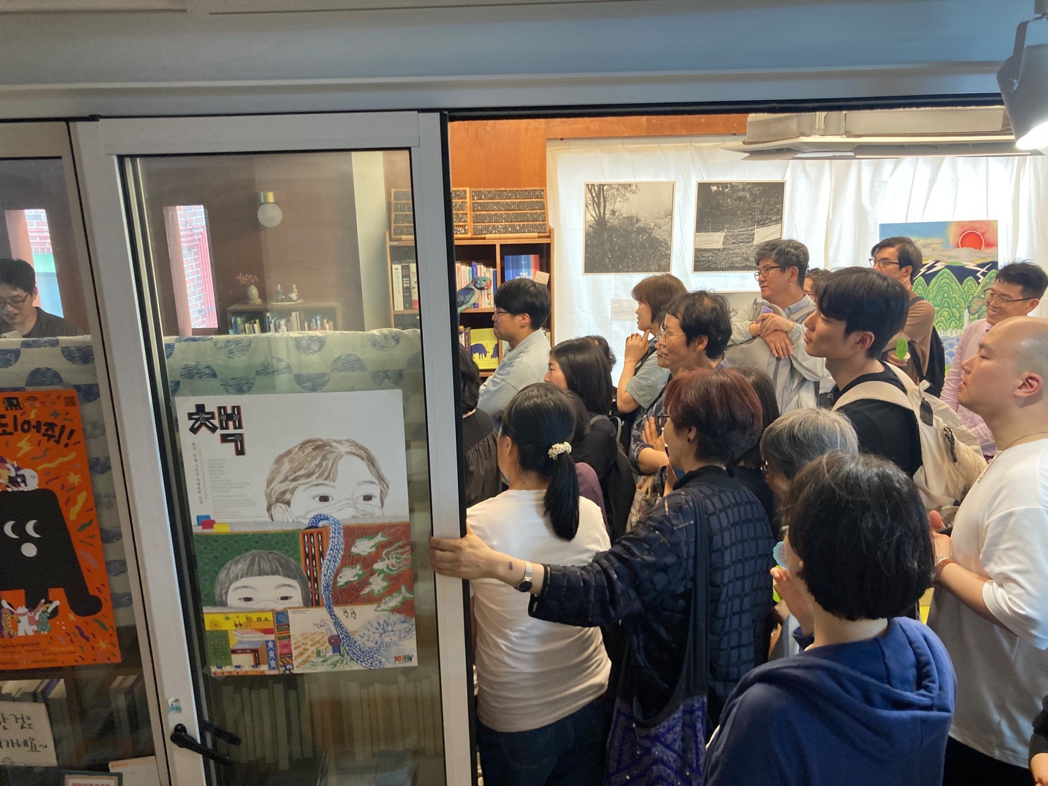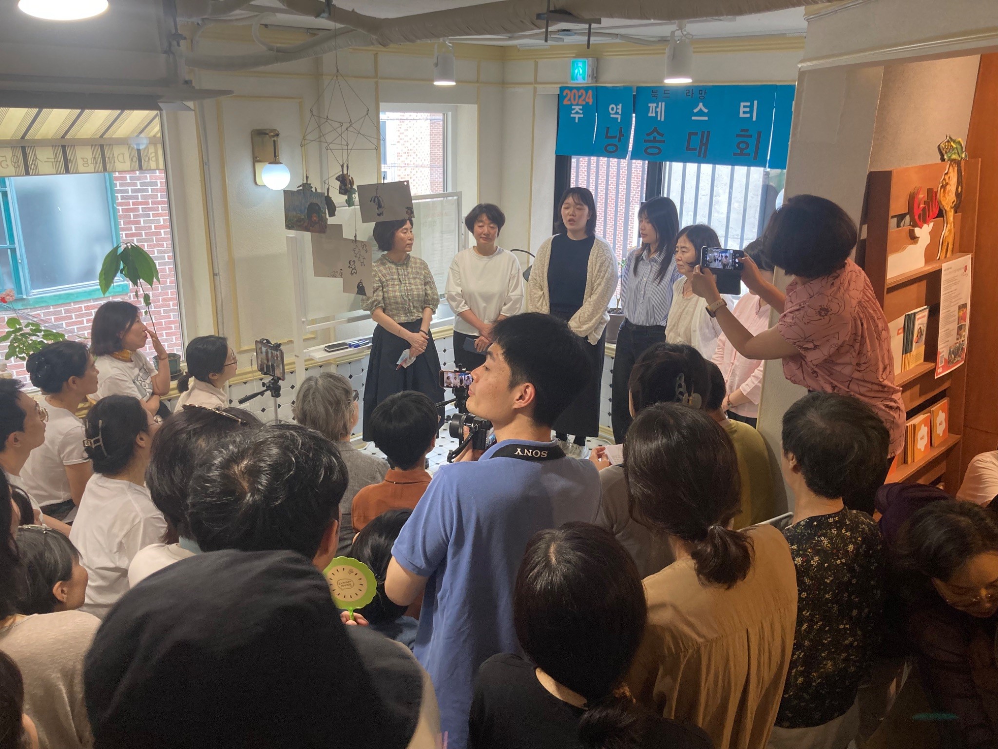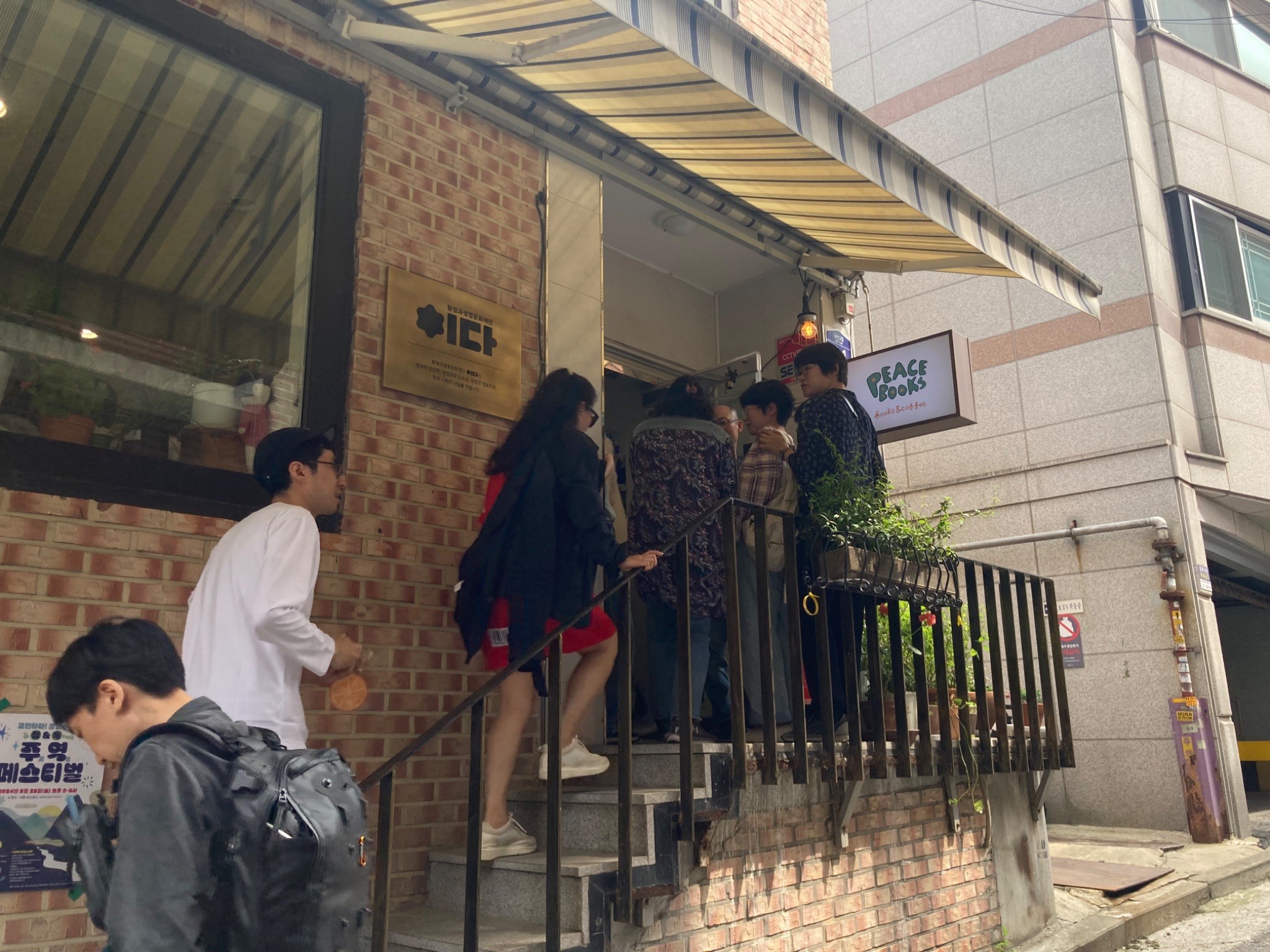 아이들의 환대를 받으며 들어간 피스북스 서점의 1층에서는 ‘주역’ 을 만나 볼 수 있었습니다. 진정한 공부는 혼자서만 쌓아두는 것이 아니라 많은 이들과 나눌 때 비로소 빛을 바라는 게 아니겠습니까?! 주역을 공부해온 사람들이 팀을 이루어 각각의 개성이 드러나는 주역 낭송대회 시간이 있었습니다. 낭송대회 발표 시간은 인기가 너무 많은 나머지 1층을 꽉 채우고 2층으로 올라가는 계단까지도 구경하는 사람들로 가득했습니다. 다행히 2층에서 실시간으로 생중계해준 덕분에 무리 없이 모두가 낭송대회를 볼 수 있었습니다.
