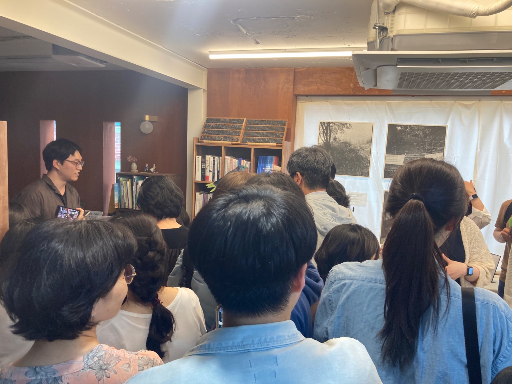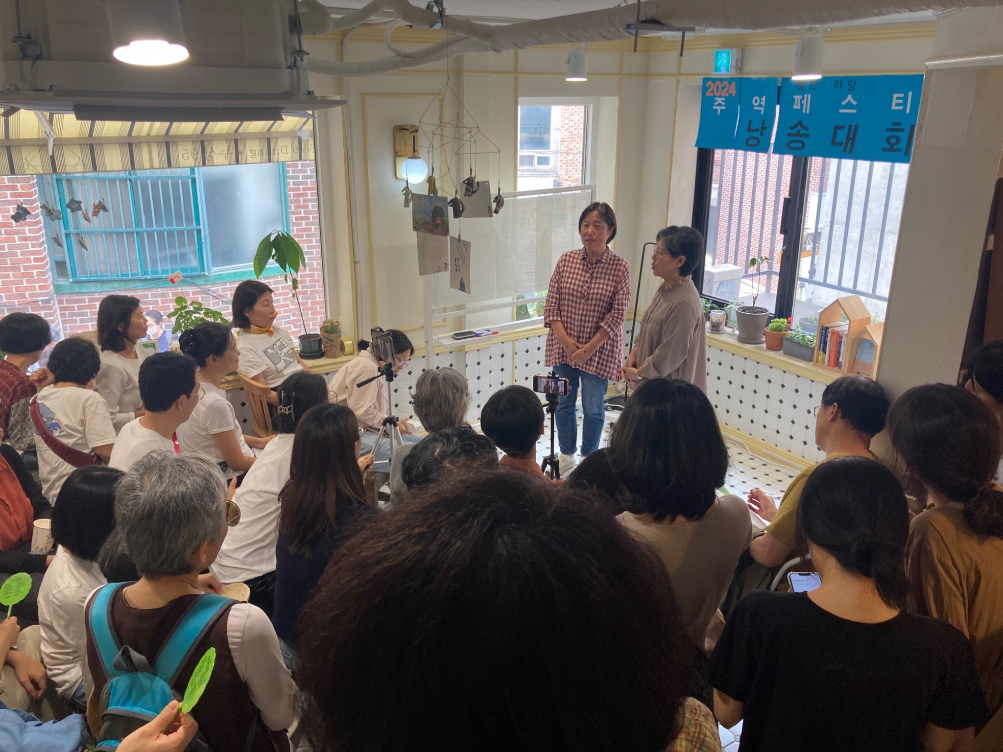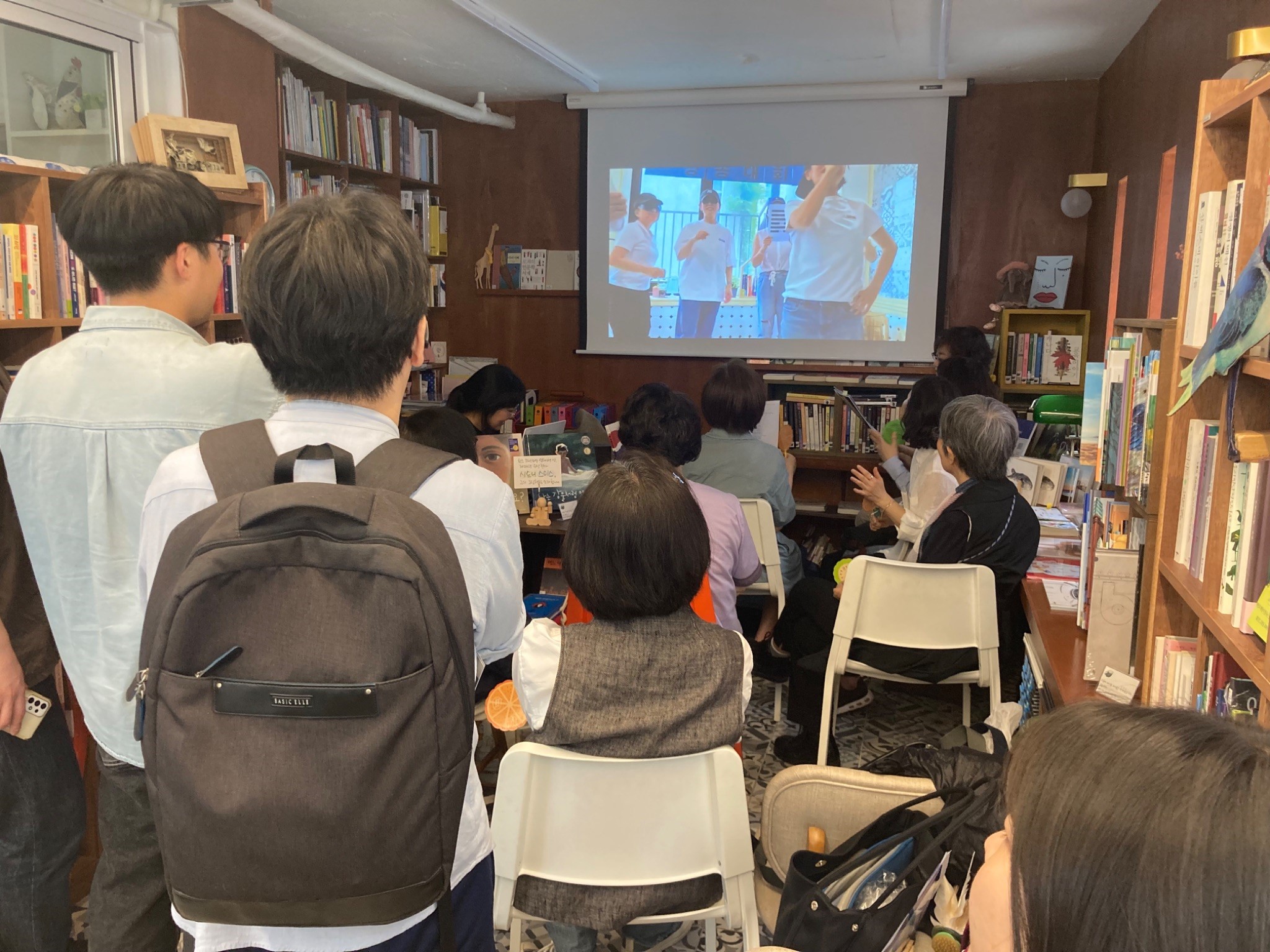 아이들의 환대를 받으며 들어간 피스북스 서점의 1층에서는 ‘주역’ 을 만나 볼 수 있었습니다. 진정한 공부는 혼자서만 쌓아두는 것이 아니라 많은 이들과 나눌 때 비로소 빛을 바라는 게 아니겠습니까?! 주역을 공부해온 사람들이 팀을 이루어 각각의 개성이 드러나는 주역 낭송대회 시간이 있었습니다. 낭송대회 발표 시간은 인기가 너무 많은 나머지 1층을 꽉 채우고 2층으로 올라가는 계단까지도 구경하는 사람들로 가득했습니다. 다행히 2층에서 실시간으로 생중계해준 덕분에 무리 없이 모두가 낭송대회를 볼 수 있었습니다.