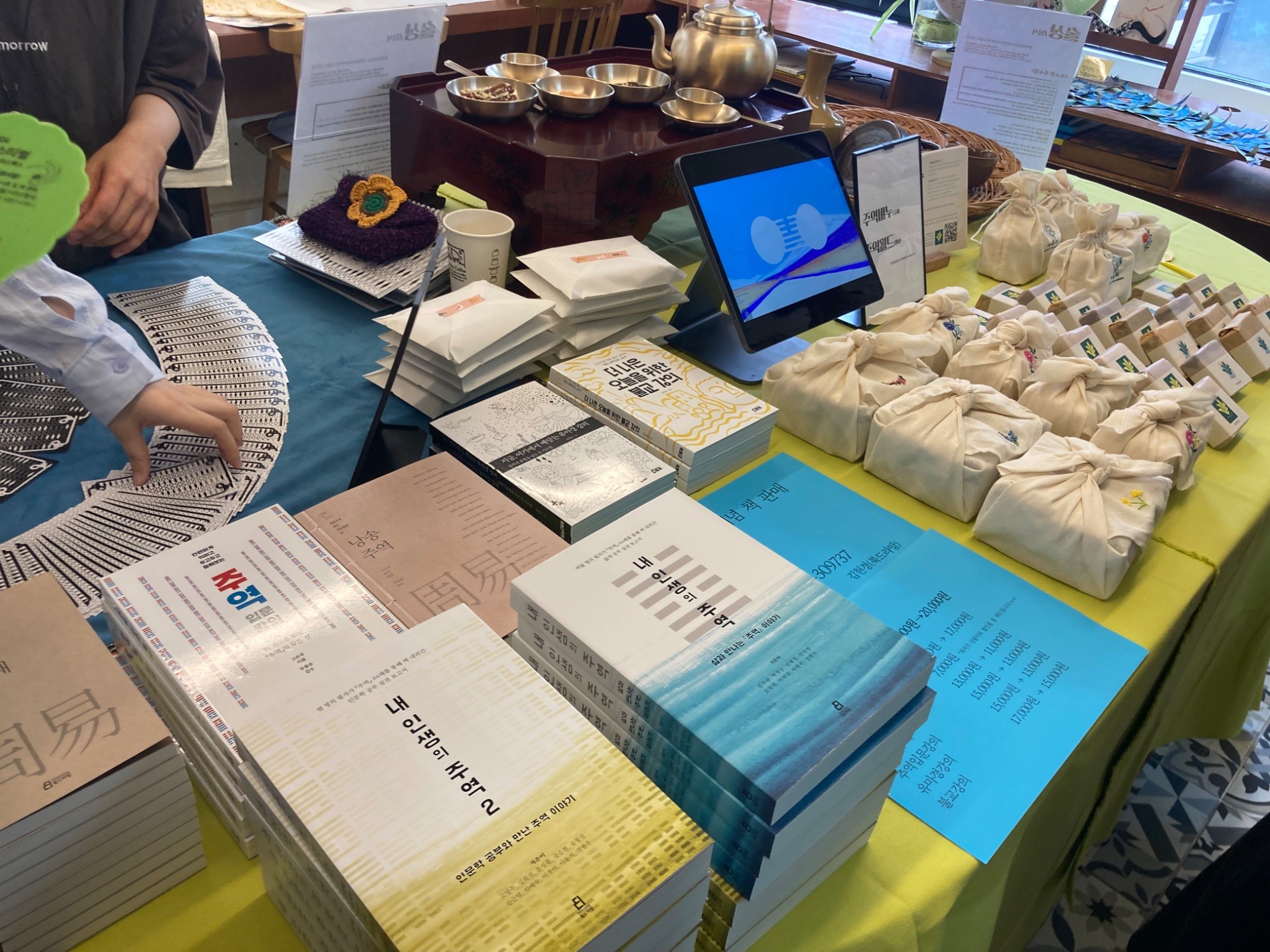 1층에서는 주역에 대해서 나누는 시간이었다면 2층에서는 주역을 주제로 한 제품들과 예술작품들이 선보여지고 있었습니다. 1층에서 강의를 진행한  『내 인생의 주역 2』 책은 물론이거니와 『더 나은 오늘을 위한 불교강의』,  『지금, 여기에서 깨닫는 유마경 강의』,  『낭송 주역』,  『주역입문강의』,  『암기 주역 64괘』,  『내 인생의 주역』 을 10% 할인된 가격으로 만나볼 수 있었습니다. 1층에서 이미 주역에 관심이 생긴 사람이라면  『주역』 을 읽어보기 전에 먼저 들여다보기 좋은 책들이 많았습니다.
