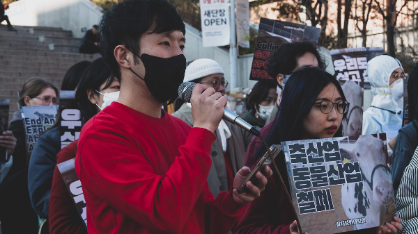 저는 그들의 죽음이 나의 생존과 분리될 수 없기에 이 자리에 섰습니다. 저는 이 자리에서 동물들이 내지르는 비명 소리를 듣습니다. 그들이 끝까지 몸부림치며 저항하는 모습을 봅니다. 이 세상에 죽여도 되는 동물은 없기에, 땅 속에 처분된 그들의 죽음을 기억하며, 저는 가축 동물들의 살처분에 반대합니다. 그리고 새로운 삶의 조건을 함께 만들어가기 위해, 여러분의 관심과 행동을 촉구합니다."