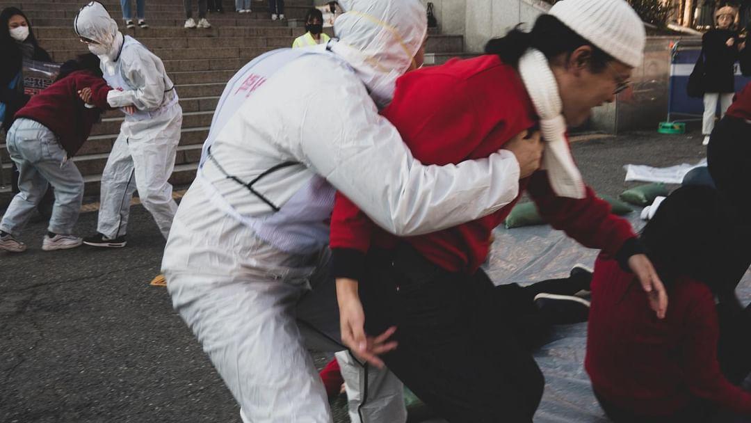 그렇게 머뭇거리는데 단톡방에 퍼포머가 부족하다는 메세지가 올라왔다. 그때서야 나는 뭐라도 해보자는 마음으로 피살처분 역할로 퍼포먼스에 참여했다. 퍼포머로 신청한 사람들은 리허설을 위해 미리 연습실에 모였다. 우리는 퍼포먼스를 기획한 활동가들과 세부적인 연출을 함께 고민하며 리허설까지 무사히 마쳤다.