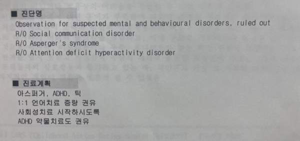 “애가 좀 아프네…. 하면서 그러더라고. 그런데 18살이 되면 다 좋아진대. 다른 아이들 사이에서 별로 티 안 나게 잘 클거래. 애가 똑똑하다고 걱정하지 말라고 하시네.”