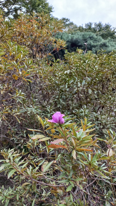 벚꽃이나 살구꽃은 그런 일이 없는데, 철쭉은 종종 가을에 피는 녀석들이 있습니다. 날이 화창하게 좋으면 겨울로 가는 중인지 여름으로 가는지 헷갈릴 만도 하지요.