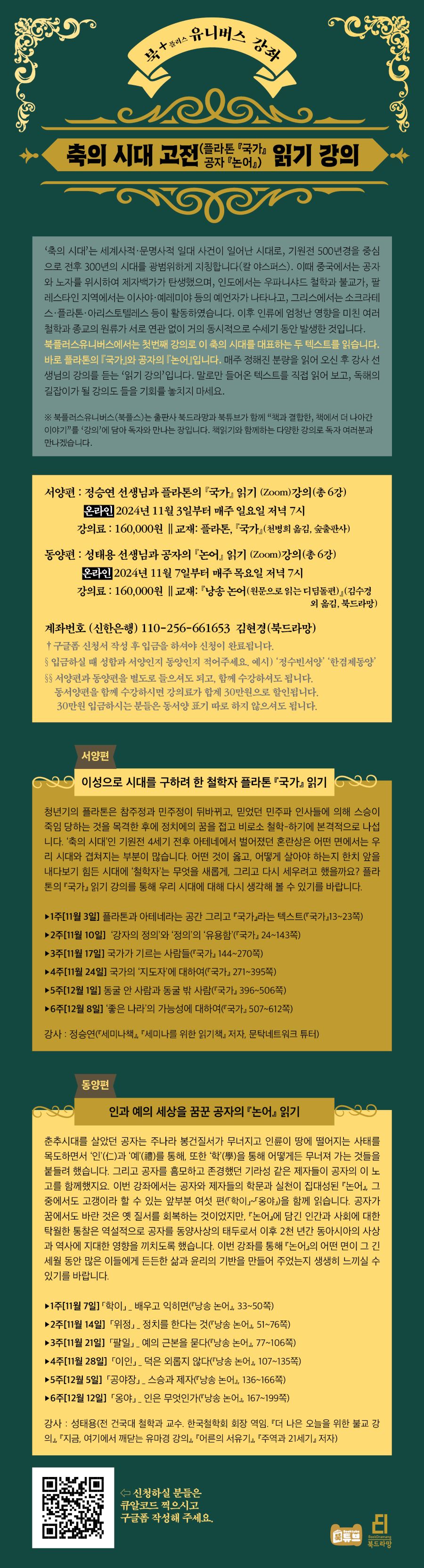 강의료 : 160,000원 / 교재: 『낭송 논어(원문으로 읽는 디딤돌편)』(김수경 외 옮김, 북드라망)