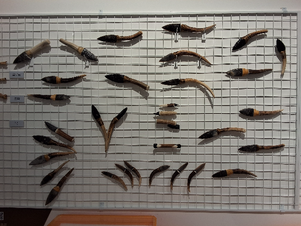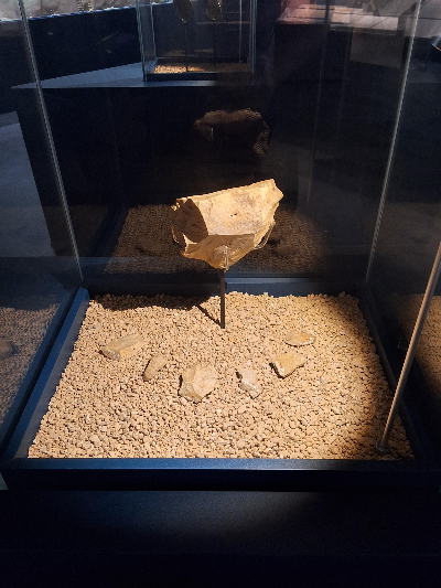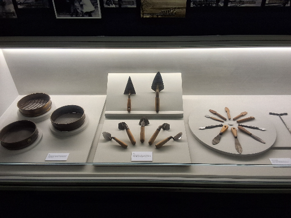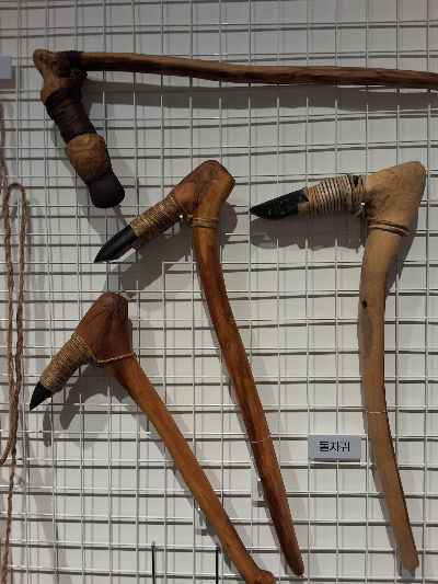 그런데 이렇게 다양한 종류의 발굴 도구들을 보고 다음 섹션으로 가면 갑자기 풍경이 달라진다. 투박한 주먹 도끼 몇 점이 유리 상자에 갇힌 모습으로 나열되어 있는 것이 전부이기 때문이다. 올해 재단장하기 전 석장리에서는 조금 더 많은 석기들이 전시되어 있었는데 그 수가 대폭 줄어 있었다. 연구팀의 노력으로 어두운 과거의 흙더미에서 걸어 나온 이 손님들은 투박하고 단조롭다. 현대의 다양한 발굴 도구들을 보고 온 뒤라 수도 적고 모양도 단조로운 도구들이 어딘가 미덥지 못하다는 느낌이 든다.