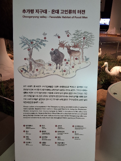 이런 생각을 갖고 《전곡 선사 박물관》2층 상설 전시실을 돌아다니니 오른쪽 맨 뒤편에 전곡인들의 채집 먹거리가 눈에 들어온다. 이 전시물은 두 가지 점에서 놀랍다. 첫째, 전시물 중에 도토리가 없다. 참나무는 신석기 시대에 비로소 진화한 나무란 말인가? 아닐 것이다. 둘째, 채집이라고 해서 나는 식물만 생각했는데 인류가 주워 먹을 수 있는 것에는 윤기 나는 까만 머루라든가 꾸지뽕, 산딸기만이 아니라 우엉이나 마, 인삼 등 구근류가 있다. 어디 그뿐인가? 온갖 모양의 버섯, 새알, 작은 애벌레, 곤충 등이 있다. 그동안 나는 먹거리 문화를 너무 거칠게 육식과 채식으로만 나누고 있었나보다. 인간은 꽤 다양한 것들을 먹을 수 있다.