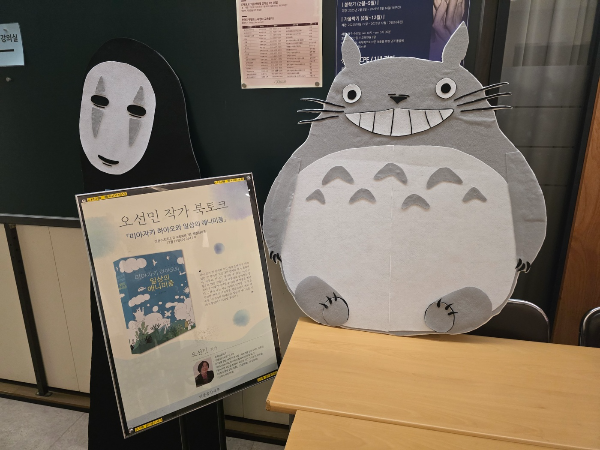 오선민 작가의 미야자키 하야오와 일상의 애니미즘 북토크 장소에 들어서자마자 처음 마주친 건 아기 토토루와 가오나시였다. 하야오 감독님이 친히 애니메이션 주인공들을 보내셨나 했는데 알고보니 기헌 샘의 손 작품이란다. 두 친구 덕분에 북토크가 한층 활기찬 느낌이었다. 북토크 강의실 뒤에는 작가님이 책을 집필하면서 참고했던 지브리 스튜디오와 미야자키 하야오 감독에 관련된 책들도 같이 전시되어 있었다. 애니메이션에 나오는 탈 것, 먹는 것 등을 비롯해 작품에 삽입되지 않는 수많은 스케치들을 모은 책도 있었다. 한 권의 책이 나오고 하나의 영화 작품이 나오는데 보이지 않는 수많은 시도와 참고 문헌이 필요함에 새삼 존경하는 마음이 들었다. 북토크는 사회자의 책에 관한 퀴즈로 시작되어 작가님의 미니 강의와 열띤 질의응답으로 이어졌다.