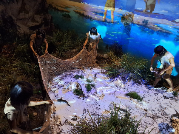 《오산리 선사 유적 박물관》에서는 신석기 어부들이 그물 던지는 모습을 재현해 놓았다. 그물의 크기가 생각보다 컸다. 그물을 길어 올리는 모습을 부분 재현해 놓았기 때문에 정확하지는 않지만, 던지거나 걷기 위해서는 열 명 정도는 필요한 듯 보였다. 열 사람 정도가 함께 어로를 해야 하니, 이들은 바닷가에서 늘 마음을 맞추며 살았을 것이다.