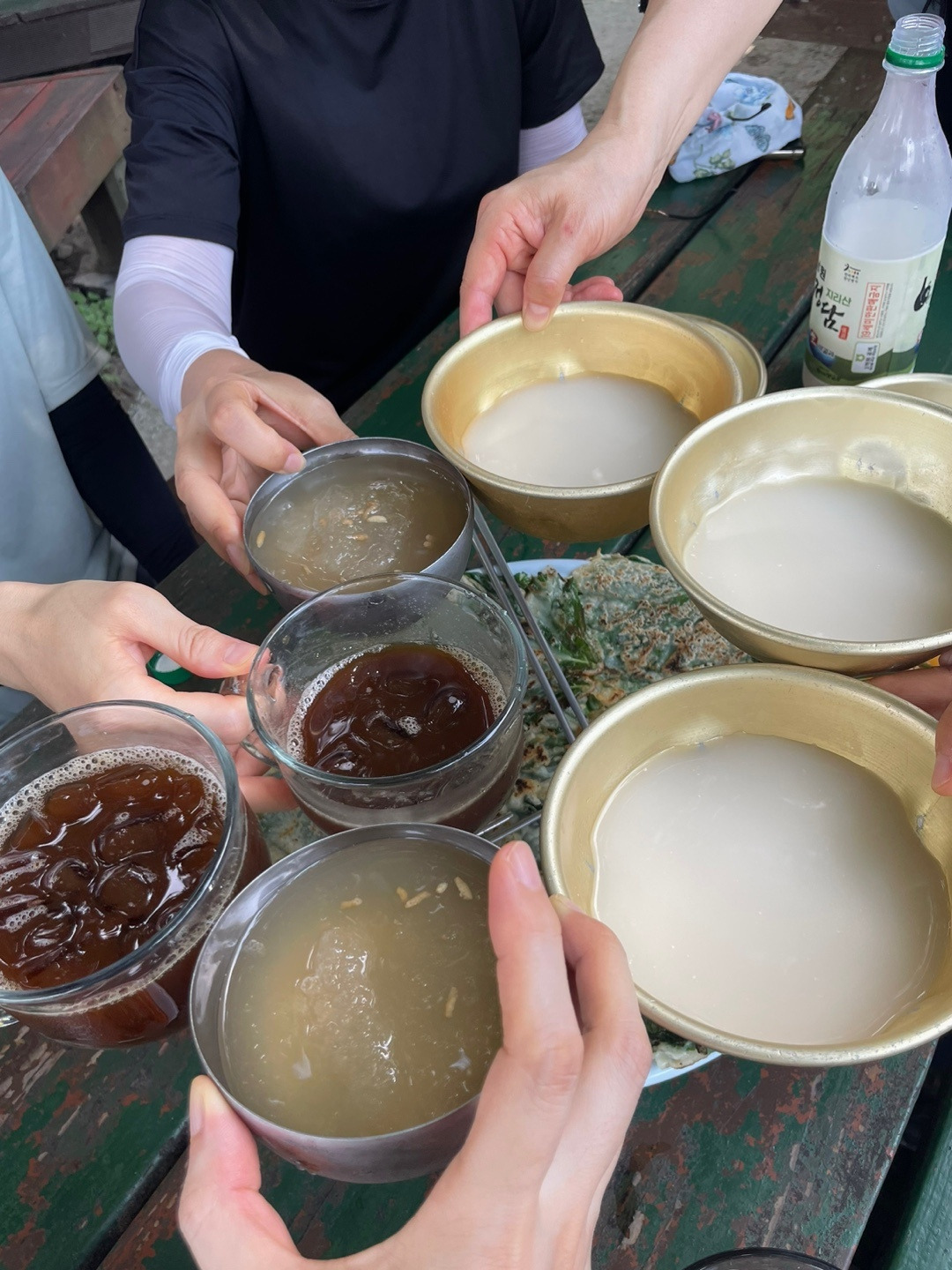 <등구령쉼터의 막걸리와 냉커피와 구절초 식혜 그리고 깻잎전>