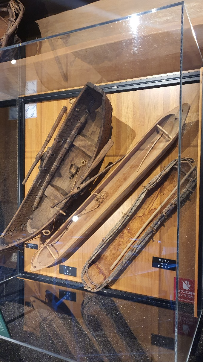 이 배의 형태적 특징은 선두와 선미의 모양이 다르다는 점이다. 선미가 납작하게 깎인 모양은 일본 조몬 시대 배에서도 확인할 수 있다. 그런데 일단 여기서 언급하고 싶은 점은 《창녕 비봉리 패총 전시관》의 재현물은 KBS 역사 스패셜이 재현하고 있는 카누와 다른 형태로 소개되어 있다는 점이다. 역사 스페셜 방영이 2005년이고 《패총 전시관》리모델링이 2017년에 되었으므로 그 사이 한반도 선사의 배 형태에 대한 학계의 의견이 달라졌을 수도 있다. 국립중앙박물관의 비봉리 배 재현물은 선두와 선미가 같이 완만한 삼각형을 가진 것으로 되어 있다. 2023년 여름 인문공간세종에서는 일본 홋카이도의 아이누 민속을 연구하기 위해 답사를 다녀왔다. 삿포로시 인근의 《니부타니 아이누 박물관平取町立風文文文化館》에서는 일본에서 제일 긴 카누가 전시되어 있었다. 이 모형은 《국립중앙박물관》과 울산반구대 고래잡이 배 암각화처럼 선두와 선미가 같은 형태다.