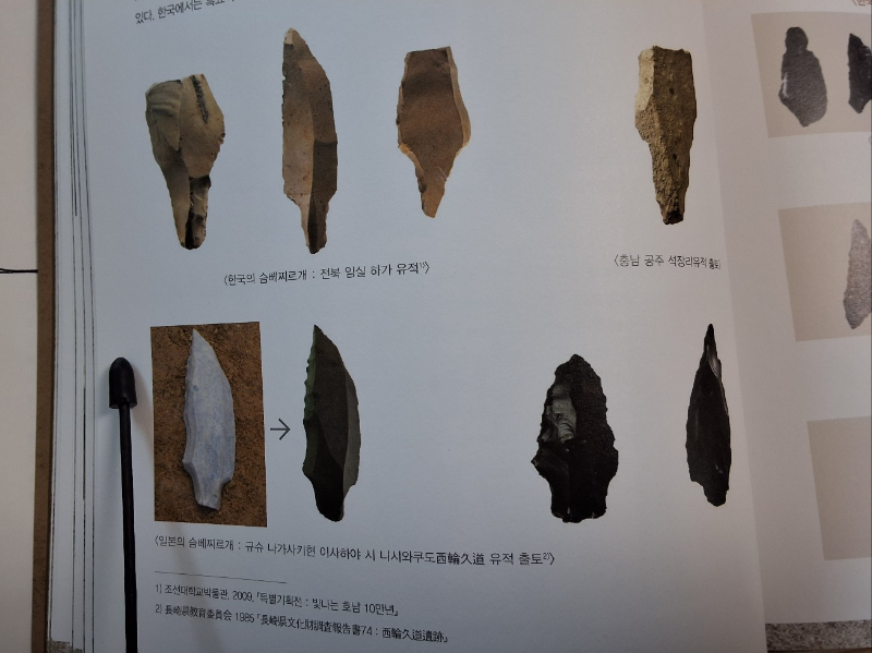 공주 석장리에서 발견된 흑요석은 직선 거리로 600km 떨어진 백두산이 고향이라고 한다. 전남 장흥의 신북 유적에서 출토된 흑요석 석기는 일본 규슈(佐賀県) 고시다케(佐賀 腰岳 黑曜石原産地)가 고향이다(링크) 일본의 또 다른 흑요석 산지로는 홋카이도의 시라타키(白滝)가 있다. 시라타키 흑요석은 질이 좋고 크기도 크고, 양도 일본 열도 최대다. 후기구석기 시대에 한반도의 서해는 완전히 평야였다. 후기구석기 대한해협은 완전히 닫히지는 않아서, 지금의 사할린 지역이 홋카이도와 붙어 있으면서 일본 열도가 길게 하나의 땅으로 연결된 것이나 다름 없다는 점에서 마치 지브롤터 해엽이 지중해의 입구가 되는 것처럼 하나의 내해였다고 할 수 있다. 한반도 남해안의 입장에서 보면 백두산보다 규슈가 지리적으로나 물질적으로나, 더 나아가 해석하면 문화적으로 가까운 곳이라고 할 수 있다. 『바다를 건넌 선사인들-흑요석의 길, 석장리 박물관 특별기획전(2019~2020) 도록)』은 백두산, 시라타키, 고시다케 그리고 일본 본토 중앙부의 나가노 신슈(信州)를 중심으로 한 흑요석 유적의 분포도를 지도 그림으로 보이고 있는데, 광역 흑요석 석기 문화권을 확인할 수 있다. 이처럼 경관의 차이, 그리고 기술의 확산 차원에서 생각하면 한국 문화, 일본 문화를 따지기 어렵다.