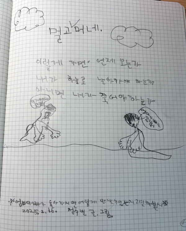 “엄마 아빠가 돌아가시면 어떻게 만날 수 있는지 고민해 본 시.”