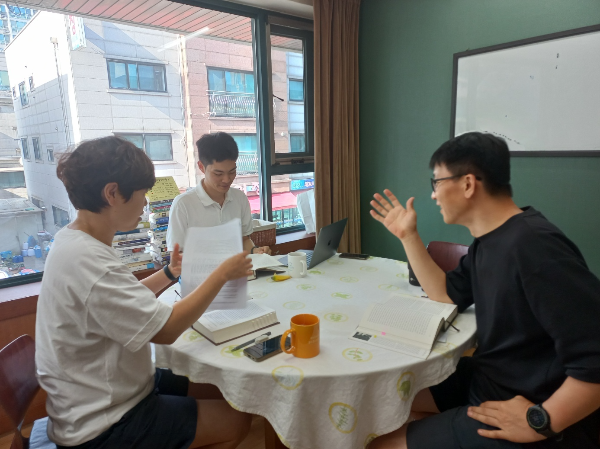 매주 화요일 오후 3시 문탁 2층에서는 어김없이 사회학 세미나가 열린다. 사회학 세미나는 태생부터 좀 남다른데, 문탁에서 공부하고 있는 청년 우현샘을 ‘사회학 세미나 튜터’로 키우겠다는 정군샘의 포부와 함께 만들어졌기 때문이다. 이름하여 육!튜!세미나!(튜터육성세미나) 그래서 처음에는 우현샘과 정군샘의 1:1 밀착 세미나로 시작했다. 2024년 1월부터 시작되었던 세미나는 그들의 진지한 분위기에 끌려 3월에 라겸샘이 합류했고, 8월에는 스프링샘이 합류하면서 덩치를 키우다가 2025년에는 어엿한 1년 기획 세미나로 자리매김했다.