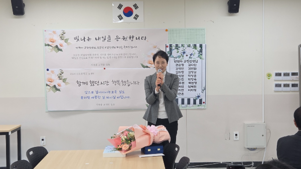 “권순정 선생님, 명예퇴직을 축하합니다.”