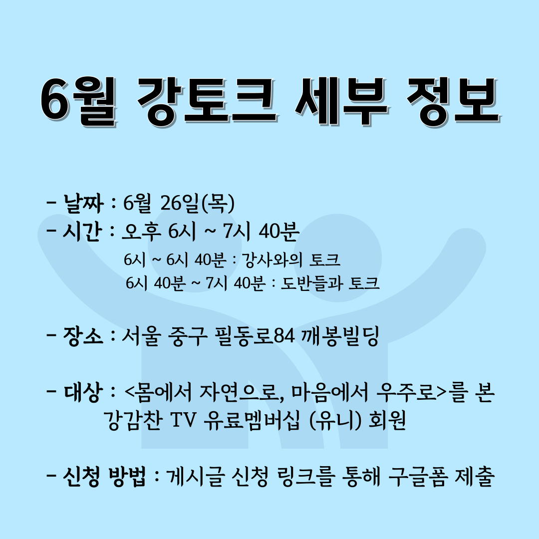 6월 스페셜 강좌는 <몸에서 자연으로, 마음에서 우주로>입니다.