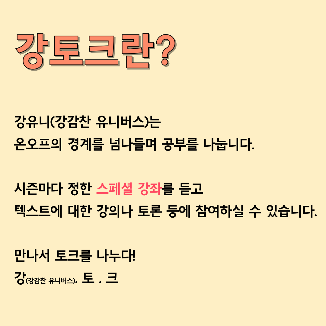 “강감찬 유니버스(강유니)”는 시즌마다 스페셜 강좌를 지정하여, 오프라인 만남을 갖습니다.