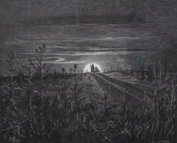 어두운 숲을 앞에 둔 단테와 베르길리우스, 밝은 달을 향해 나아가고 있는 돈키호테와 산초. 풍경 속에 두 사람을 작게 그려놓은, 닮았으면서도 대조적인 두 그림은 무언가 많은 이야기를 하고 있는 듯합니다.