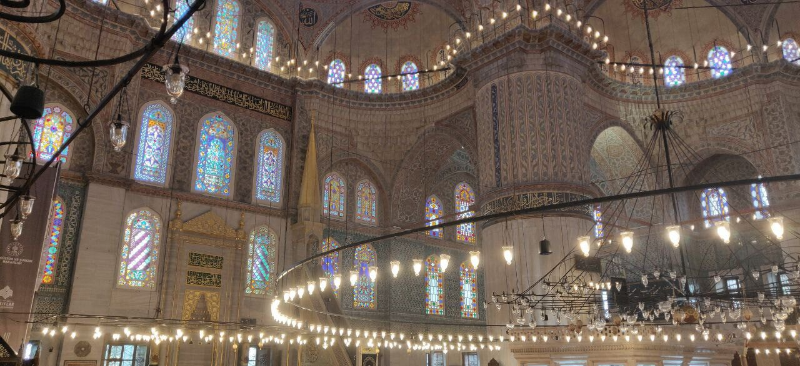 터키의 인구 98%는 이슬람을 믿는다. 이슬람에 대해 아예 무지한 채로 가장 유명한 이슬람 사원 중 하나인 블루 모스크Blue Mosque를 방문했다. 건물은 대리석으로 되어있고 건축 양식은 유럽의 성 같으면서도 푸른 색채나 대리석의 문양들이 이국적인 느낌을 주었다. 입구 옆 쪽으로 붙어있는 수도에서는 남자들이 발을 씻고 있었다. 사원에는 보통 맨발로 들어가기 때문에, 신께 기도 드리기 전 발을 깨끗이 한다는 것이다. 여성인 관광객들은 입구에서 천을 받아 머리를 가리고 들어가야 했다. 몸에 달라붙는 레깅스를 입은 베이자는 치마 같아 보이는 천을 두르기도 해야 했다. 히잡을 쓰고 들어간 사원 안은 기가 막히게 아름다웠다. 천장이 높았고 사람들이 모두 신발을 벗고 들어가야 해서 발 냄새가 났다. 관광객들이 들어가지 못하게 막힌 한 공간에서 이슬람 신자들이 기도를 드리고 있었다.