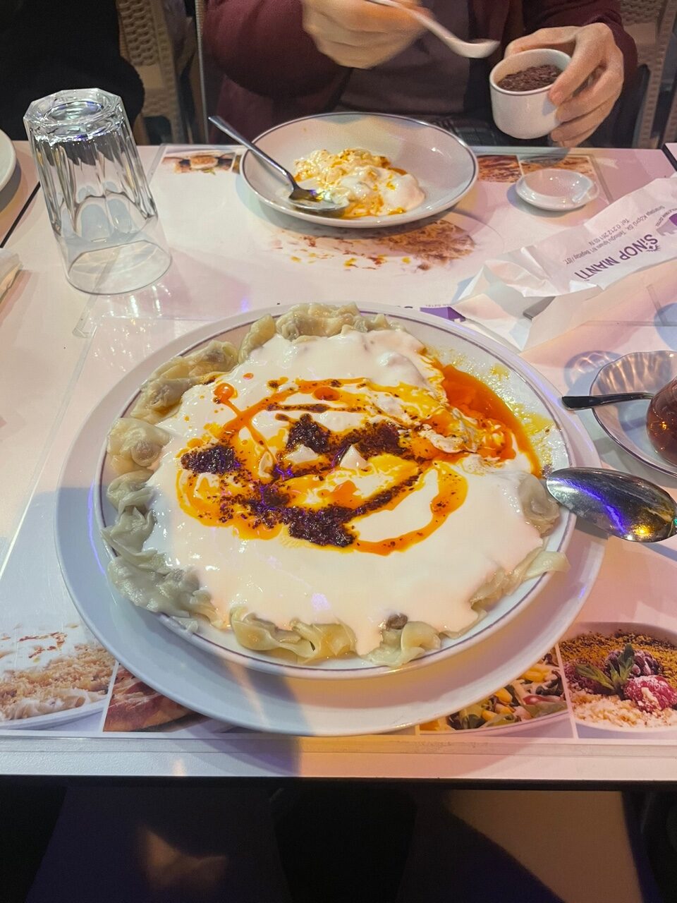 터키는 미식 국가다. 내가 좋아하는 디저트인 바클라바를 결국 먹고(이것 때문에 터키 여행이 시작됐다.) 여러 케밥들을 먹어봤다. 우리나라 전통음식에는 유제품이 별로 없는 반면에 터키는 굉장히 많은 음식에 요거트&요거트 음료(아이란)를 함께 먹는다. 오른쪽 음식은 물만두같은 것에 요거트와 고추 기름을 끼얹은 음식이다. 나에게는 가장 특이했던 음식...