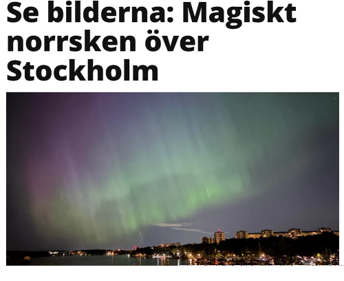 그 다음날 아침에 일어나니 인터넷에 온통 ‘스웨덴 전역에서 오로라 관측됨’ 하고, 스웨덴의 각 지역 신문이 지역 명소와 함께 찍은 오로라 사진을 올려놨다. ‘기차 타고 북부까지 가지 않아도, 집에서 창을 통해 편하게 오로라를 볼 수 있었는데….’