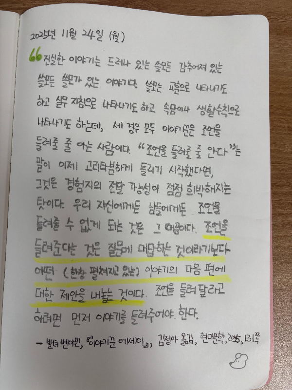 | [이주의 문장] “우리가 누구인지 말해 주는 것은” (0) | 2025.12.01 |