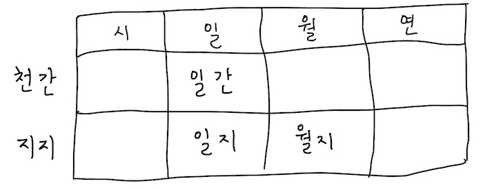 사극드라마를 보거나 역사 교과서를 읽을 때 자주 등장하는 말이다. 지금 우리는 날짜를 표현할 때 숫자를 사용하지만, 동양 땅에 살았던 옛 선조들은 날짜를 ‘간지(干支)’라는 체계로 표현했다. 사주명리의 기본을 알기 위해선 바로 이 간지를 먼저 알아야 한다. 간지는 ‘천간(天干)’과 ‘지지(地支)’를 합친 말로, 말 그대로 하늘의 기운과 땅의 기운이 결합했다는 뜻을 담고 있다. 천간은 10개(갑, 을, 병, 정, 무, 기, 경, 신, 임, 계), 지지는 12개(자, 축, 인, 묘, 진, 사, 오, 미, 신, 유, 술, 해)가 있다. 천간의 첫 글자와 지지의 첫 글자를 조합하면 ‘갑자(甲子)’가 된다. 갑자를 시작으로 을축, 병인, 정묘…. 순서로 쭉쭉 이어져서 다시 ‘갑자’로 돌아오기까지 총 60번을 지나야 한다. 때문에 간지를 60갑자라고 표현하기도 한다.
