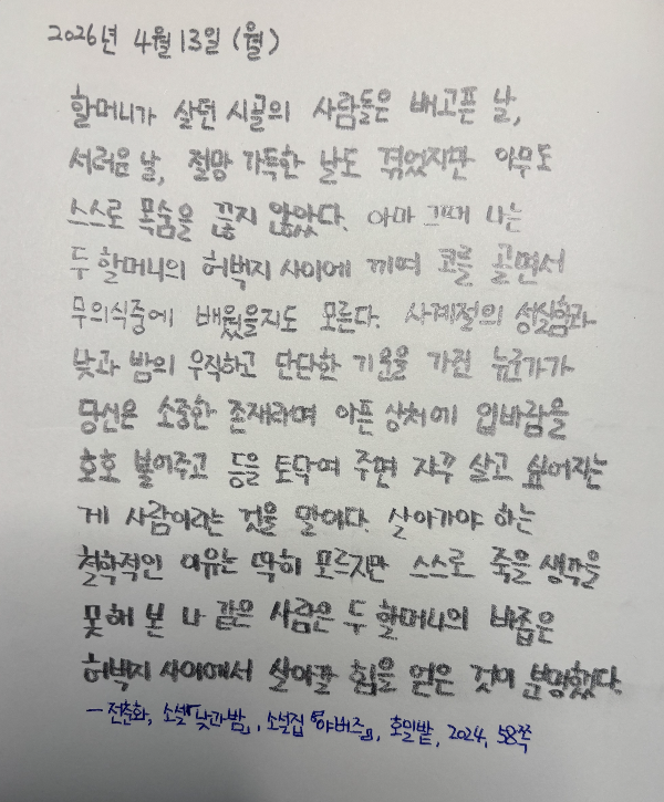 | [이주의 문장] "나는 어떤 존재가 되기를 원하는가" (0) | 2026.03.16 |