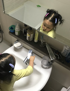 손씻다가 미칠 노릇 나는 손을 꽤 열심히 씻는다. 음, 무엇보다 흡연자이기 때문에 손씻기를 게을리하면 남들에게 불쾌감을 주는 담배냄새가 훨씬 더 심하게 나기 때문이다. 또, 나는 현대의학을, 그 중에서도 공중보건에 관해 상당한 신뢰를 가지고 있기도 하다. 그리하여 손가락 사이, 손톱, 엄지손가락, 손등까지 보건소에서 알려주는 그대로 손을 씻는다. 문제는, 우리 딸이 그걸 따라한다는 데 있다. 처음엔 그저 장난 삼아 비누를 가지고 놀라고 알려주었는데, 이젠 하루에 네다섯번씩, 그렇게 정석대로 손을 씻으려고 든다. 물로만 씻어도 충분한 상태(토마토가 묻었다거나, 귤즙이 묻었다거나)임에도 무조건 비누로, 최소한 손톱 밑 정도는 씻어줘야 그만둔다. 당장 어딜 나가야 하거나, 밥을 차려야 하거나, 뭐 기타 등등 ..